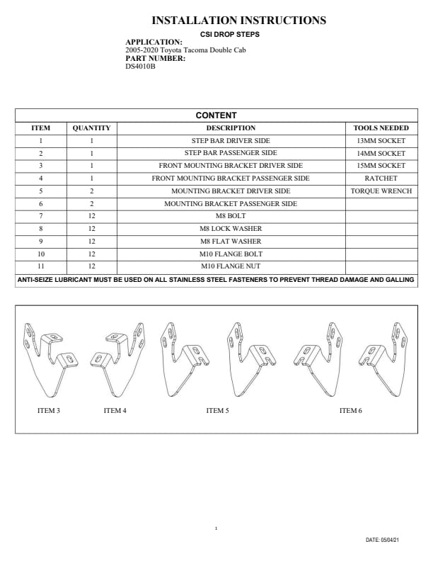 Drop Steps; 4 in. Drop Steps; 14 in. Step Plate;