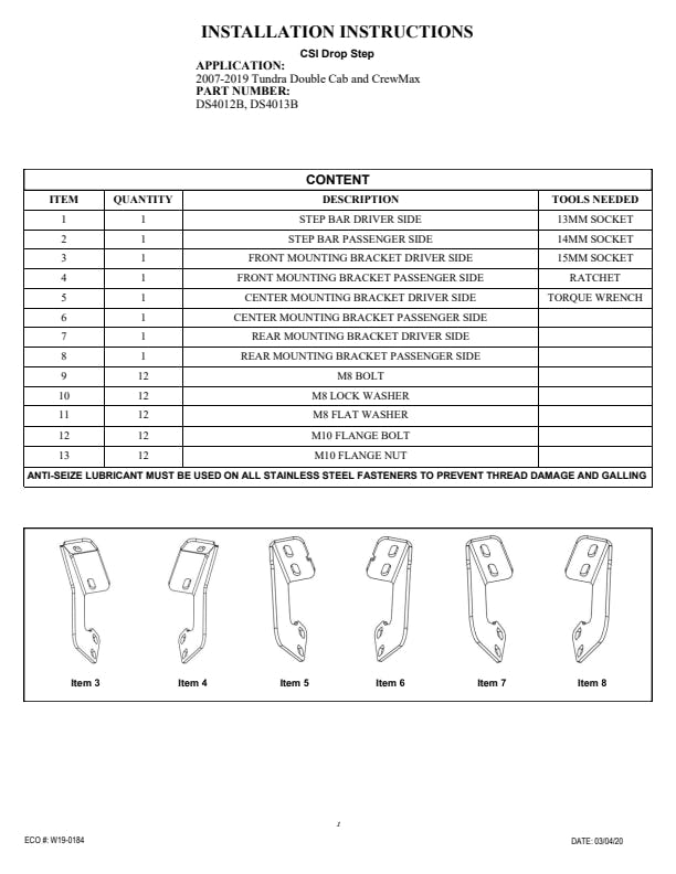 Drop Steps; 4 in. Drop Steps; 14 in. Step Plate;